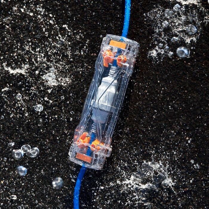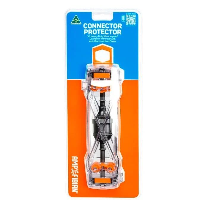The Ampfibian X1 Connector Protector seals power lead connections and stops them from pulling apart. Perfect for everybody who uses extension leads outdoors and around water at home and at work.