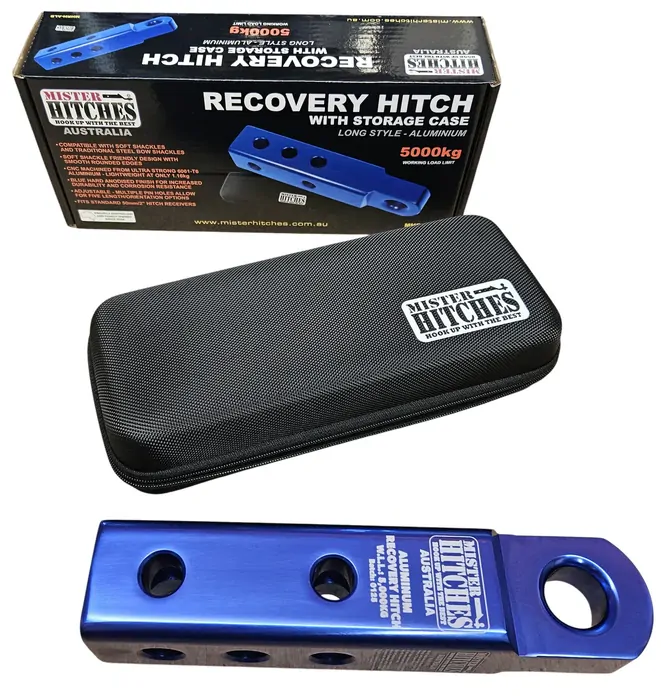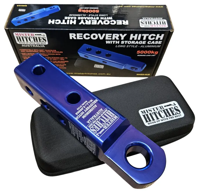 MISTER HITCHES Recovery Hitch Long Aluminium Blue WLL 5000kg MBS 10,000KG