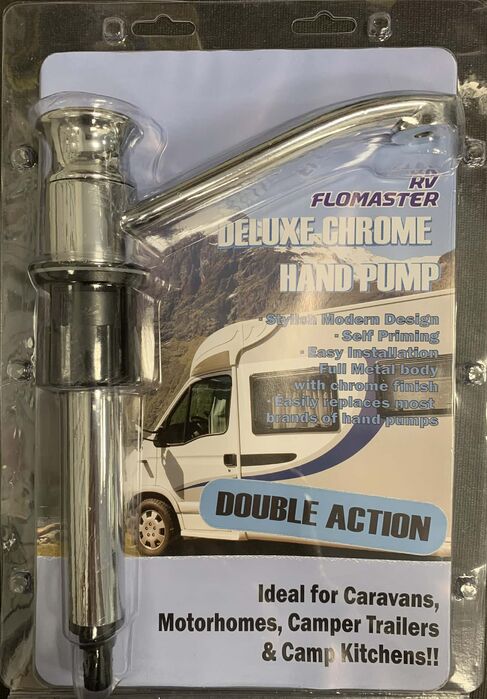 Discover the ultimate convenience for your caravan, motorhome, camper trailer, or camp kitchen with the RV Flomaster Deluxe Chrome Hand Pump. With its double-action mechanism, this pump is your reliable companion for a range of applications.